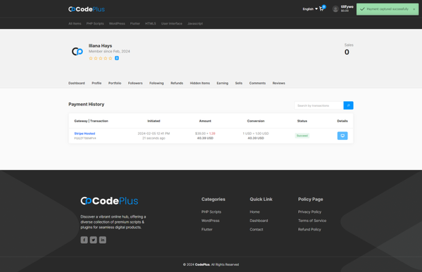 CodePlus, a Smart & Exclusive Code And template Selling Marketplace, comes with Huge automation with Automated payment, reviewer Panel, Digital Notification, Profile Badge, Secure Transactions and more. No Monthly Fees, No Hidden Charges, and No Encryptions. comes with a lifetime, and affordable price. CodePlus comes with all the essential features required to automate your Digital items Marketplace globally. Discover a cutting-edge platform for seamless Code And template Selling business. Engage in the dynamic admin panel, simplify purchases, and enjoy secure transactions. Effortlessly connect with social login and choose from multiple payment options. Join us for a smarter, safer, and more engaging digital experience. Get ready to experience the ultimate thrill of a Code And template-selling Marketplace business website with CodePlus! Explore inbuilt features designed to elevate your experience.